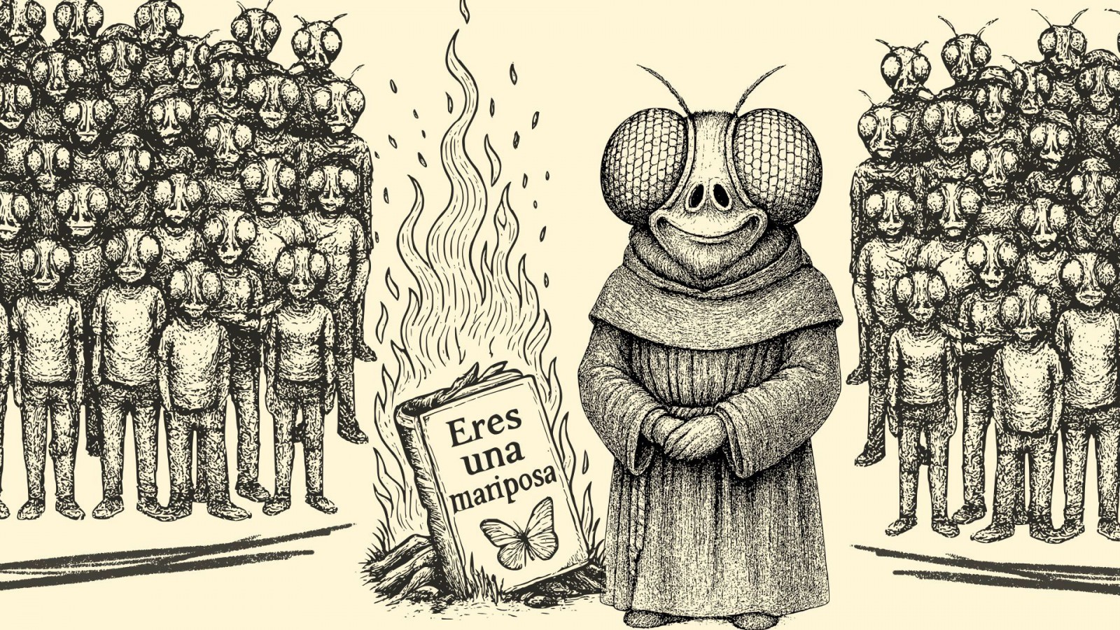 La historia encuentra su origen en una fábula que desafía la industria del optimismo y los ideales de perfección personal. En esta narrativa, el protagonista, Pedro Misericordioso, aspira a convertirse en mariposa pero termina transformándose en mosca. Esta metamorfosis revela que el humor y la aceptación de las imperfecciones son caminos hacia la liberación personal.
