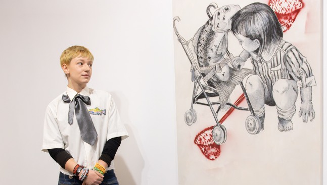 “Tejiendo a contracorriente” tiene sus raíces en “Trucha”, una obra presentada en mayo de 2025 en el museo Domus Artium 2002 (DA2) durante la exposición colectiva “Gentrificación: el depredador en el laboratorio del arte”. Esta serie teje, a través de un universo contaminado y postindustrial similar al nuestro, una narrativa abierta sobre la crisis ambiental y las tensiones entre la máquina, la naturaleza y el ser humano. Así lo expusieron en rueda de prensa Javier Panera, director del Servicio de Actividades Culturales; Diego del Pozo, vicedecano de infraestructuras y extensión cultural; junto a la propia artista.