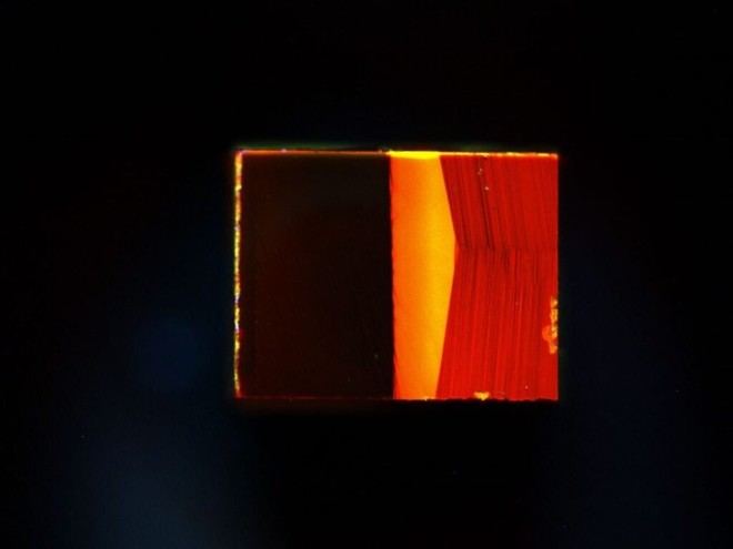 Muestra de diamante conteniendo el defecto NsH-C0 bajo iluminación UV – Junn Keat / Universidad de Warwick.