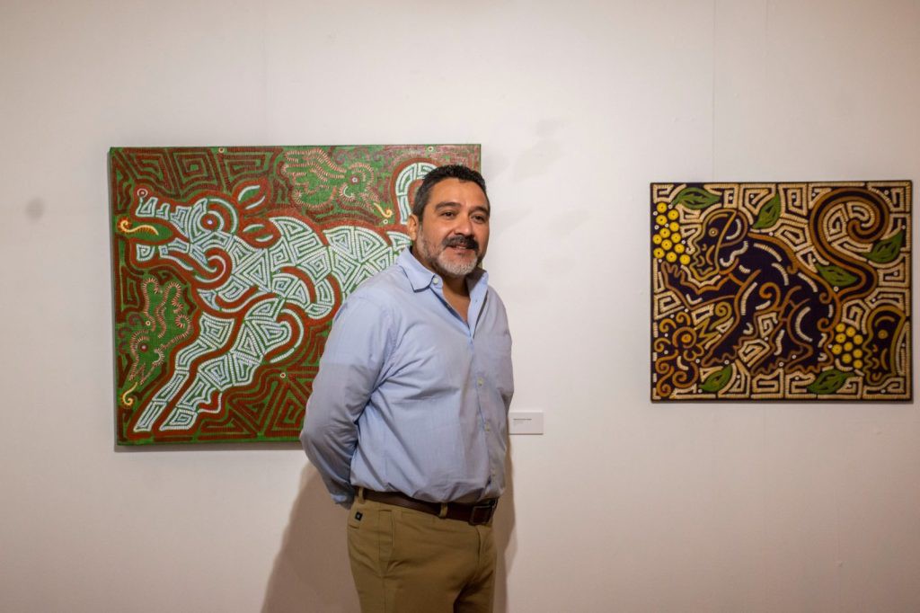 “Herencias míticas” reúne 15 obras del pintor yucateco Ernesto Novelo, quien fusiona el neoexpresionismo con elementos del arte primitivo. Su estilo se caracteriza por el uso de colores vibrantes, formas planas y una perspectiva no convencional, creando un diálogo entre lo abstracto y lo figurativo. Esta exposición invita a reflexionar sobre relatos, símbolos y saberes ancestrales que conforman la identidad cultural de la península de Yucatán, reinterpretados desde una óptica contemporánea.