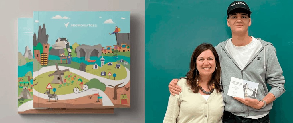 El proyecto premiado consistió en el diseño de la portada y contraportada del catálogo de Promoviatges, con el objetivo de crear una propuesta gráfica que se convierta en la imagen oficial para el próximo año. Este ejercicio no solo conecta a los estudiantes con el mundo profesional, sino que también promueve un enfoque estratégico y conceptual hacia el diseño.