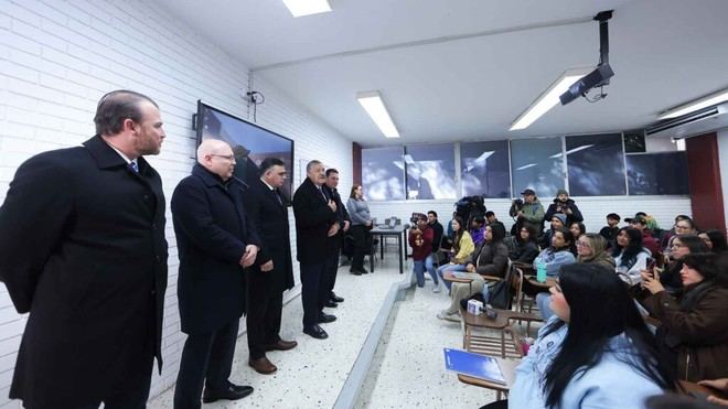 Además de dar la bienvenida en Santiago, Guzmán López realizó una visita a la Facultad de Ciencias Políticas y Relaciones Internacionales en el Campus Mederos. Durante esta visita, estuvo acompañado por varios funcionarios universitarios, quienes también participaron en un recorrido guiado por las instalaciones.