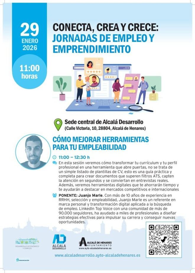 El Ayuntamiento de Alcalá de Henares organiza el 29 de enero una jornada gratuita sobre empleabilidad, enfocada en optimizar currículum y presencia digital para mejorar oportunidades laborales.