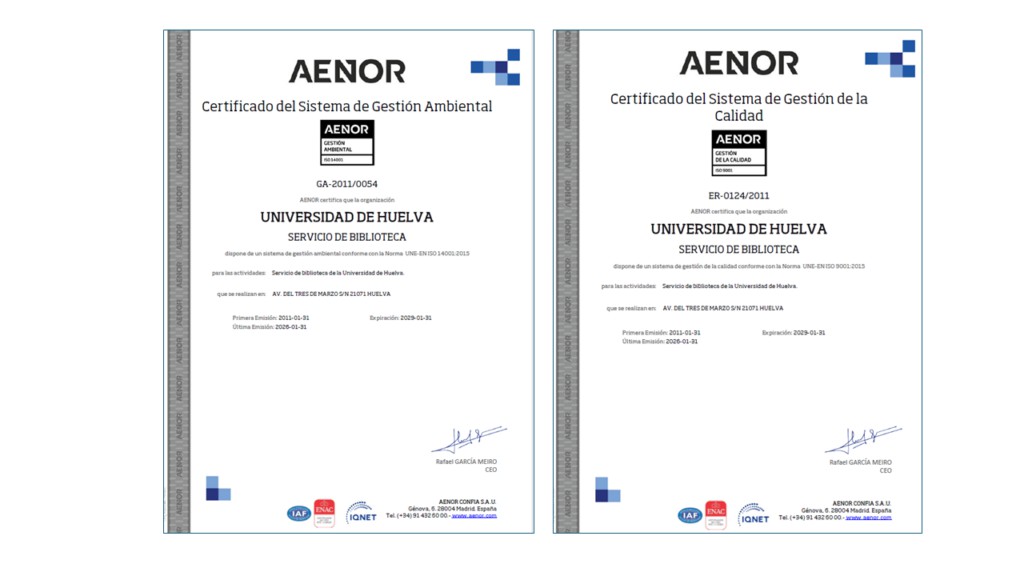 La Biblioteca Universitaria renueva sus certificados de calidad y medio ambiente