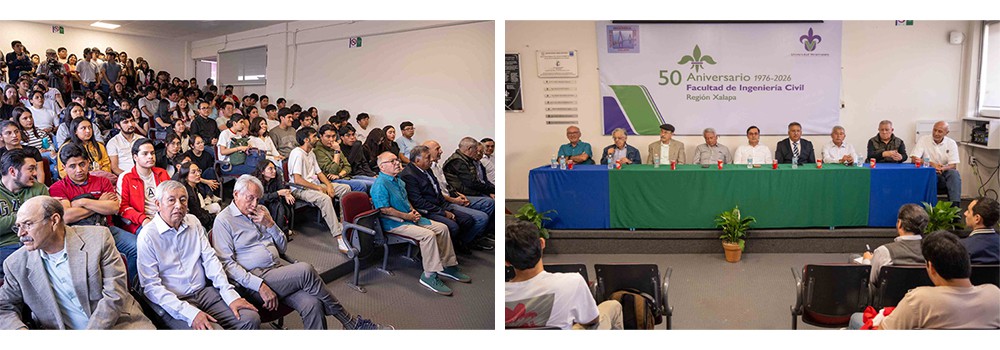 Conversatorio reúne a profesores retirados y autoridades para dar inicio a los festejos del medio siglo de la Facultad de Ingeniería Civil de la Universidad Veracruzana (UV). Durante el evento, se rindió homenaje a quienes han sido pilares en la formación de generaciones de ingenieros civiles.