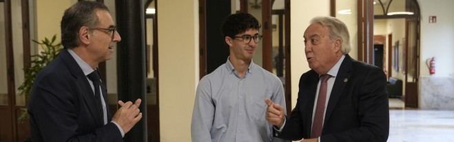El presidente del Consejo Social de la Universidad de Murcia, Bartolomé Viúdez, ha recibido en su despacho a Arturo Cruz, un estudiante del Grado en Enfermería de la UMU, quien ha sido galardonado como el ganador del concurso nacional organizado por la Conferencia de Consejos Sociales de las Universidades Españolas. Este certamen tenía como objetivo el diseño del nuevo logotipo para dicha organización.