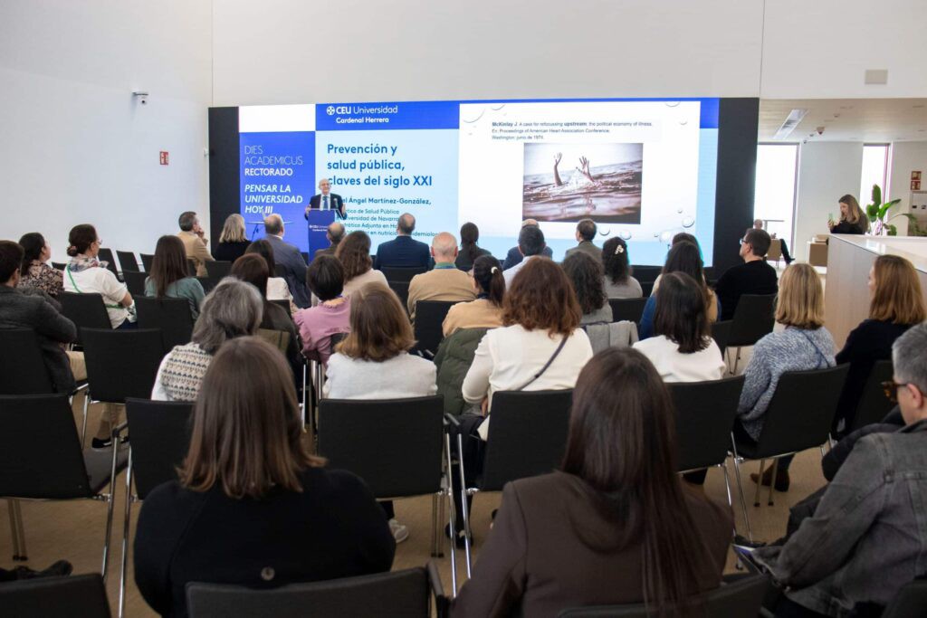 El catedrático de Salud Pública de la Universidad de Navarra y profesor adjunto en Harvard, Miguel Ángel Martínez-González, ha sido el protagonista del tercer ciclo de conferencias Dies Academicus Pensar la Universidad Hoy, organizado por el rectorado de la Universidad CEU Cardenal Herrera. Durante su intervención, celebrada el pasado 11 de marzo en Valencia, abordó la crucial función que deben desempeñar las universidades en la prevención y promoción de la salud pública.