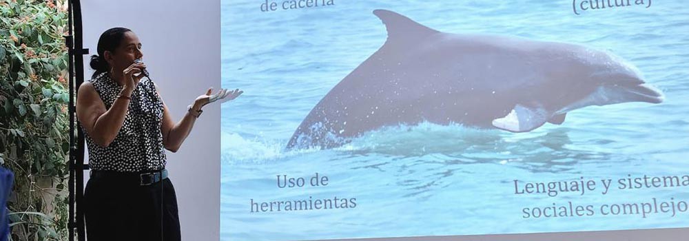 La académica participó en la iniciativa “Café científico”, organizada por diversas entidades académicas. Durante su exposición, utilizó ejemplos de la vida marina y referencias culturales para facilitar la comprensión del tema. Por ejemplo, mencionó a Dory, el pez cirujano azul del filme Buscando a Nemo, como una forma lúdica y accesible para explicar ciertos procesos cognitivos.
