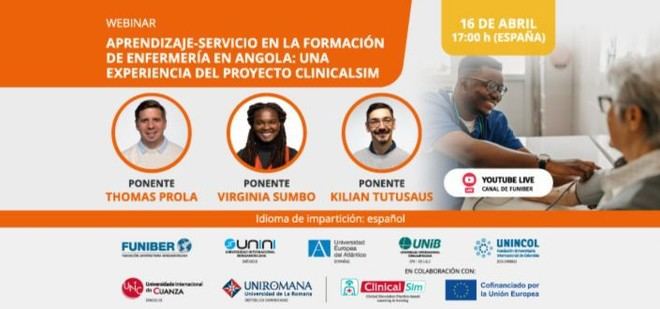 La Universidad Europea del Atlántico (UNEATLANTICO) y la Fundación Universitaria Iberoamericana (FUNIBER) han anunciado la realización de un webinar titulado «Aprendizaje-servicio en la formación de enfermería en Angola: una experiencia del proyecto CLINICALSIM». Este evento se llevará a cabo el próximo 16 de abril a las 17:00 horas (hora española) y contará con la participación de destacados ponentes como Thomas Prola, Virginia Sumbo y Kilian Tutusaus.